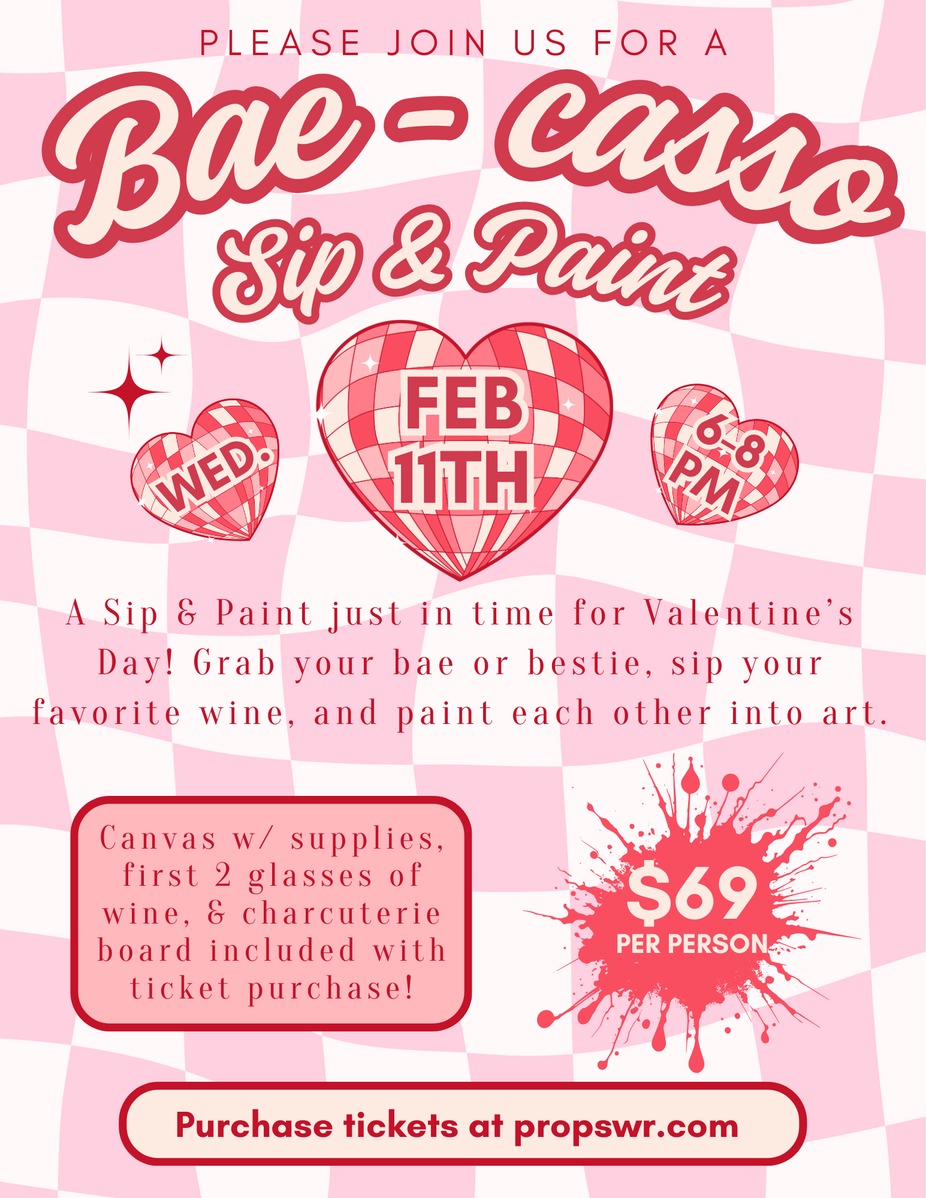 A Sip and Paint just in time for Valentine’s Day! Grab your bae or bestie, sip your favorite wine, and paint each other into art.